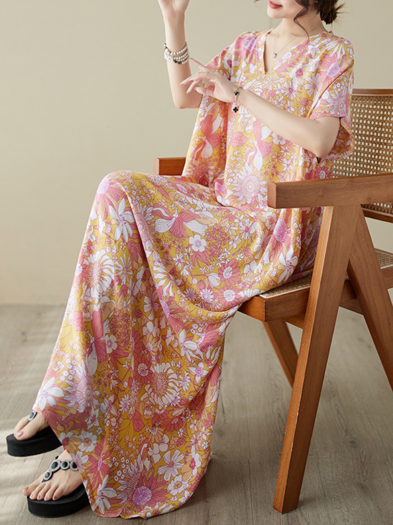 Wir präsentieren das „Dream Girl Damen Kaftankleid aus Baumwolle mit V-Ausschnitt und Blumenmuster“. Ein atemberaubendes und bequemes Kleidungsstück, in dem Sie sich wie eine echte Traumfrau fühlen. Hergestellt aus hochwertigem Baumwollstoff, ist dieses Kleid weich und atmungsaktiv und sorgt den ganzen Tag lang für ein angenehmes Tragegefühl. In einem bezaubernden Rosa strahlt dieses Kleid Weiblichkeit und Charme aus. Der Rosaton verleiht einen Hauch von Verspieltheit und Romantik und ergänzt den Bohème-Stil des Kleides perfekt. Ob Sie eine Gartenparty besuchen oder einen sonnigen Tag am Strand genießen – in diesem Kleid fühlen Sie sich wie die Verkörperung einer verträumten Bohème-Prinzessin. Das Kleid besticht durch seinen schmeichelhaften V-Ausschnitt, der Ihr Dekolleté betont und Ihrem Gesamtlook eine feminine Note verleiht. Der V-Ausschnitt ist bekannt für seine Vielseitigkeit und seine Fähigkeit, einen streckenden Effekt zu erzeugen. Er verleiht Ihnen ein elegantes und selbstbewusstes Gefühl. Zusätzlichen Charme verleiht das wunderschöne Blumenmuster. Die aufwendigen Blumendrucke verleihen ein Gefühl natürlicher Schönheit und schaffen eine optisch ansprechende Ästhetik.