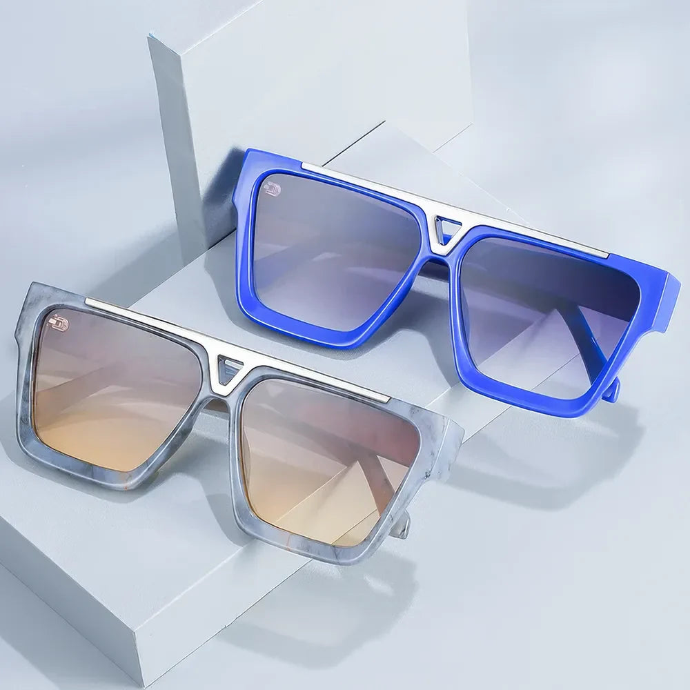 Unsere neuen Fashion Shield Sonnenbrillen bestechen durch ihre einzigartigen Verlaufsgläser und den luxuriösen Metallrahmen. Sie vereinen Mode und Funktion und bieten sowohl Stil als auch UV-Schutz. Mit bequemer Passform und trendigem Design sind diese Sonnenbrillen ein Must-have für alle, die ein Statement setzen möchten.