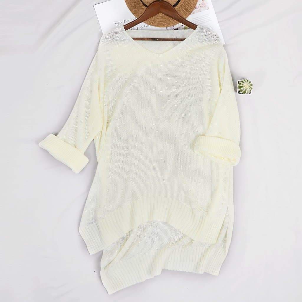 Strand-Stricktunika. Ideal zum Überwerfen. Kombinieren Sie sie mit einer unserer vielen Yogahosen, Jeansshorts und Röcken. Sie ist auch das perfekte Cover-Up für jede Sommerparty!
