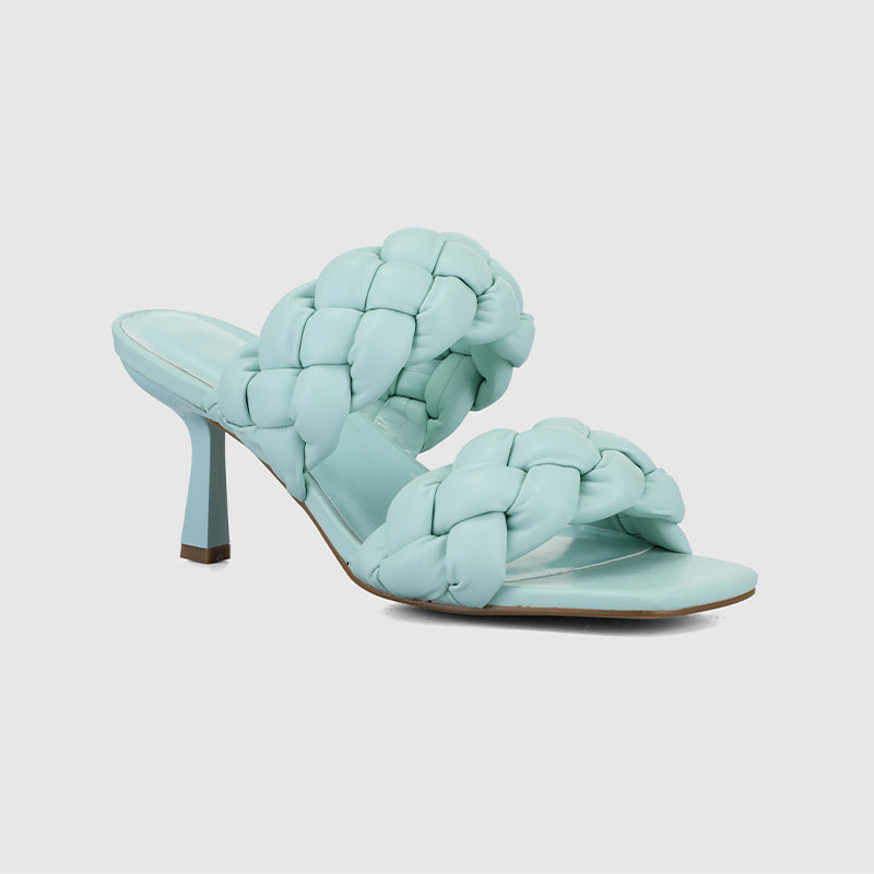 Gehen Sie den ganzen Sommer lang selbstbewusst mit diesen auffällige Slide-Sandalen mit Blockabsatz mit einem quadratische offene Zehenpartie und zwei geflochtene Riemen.