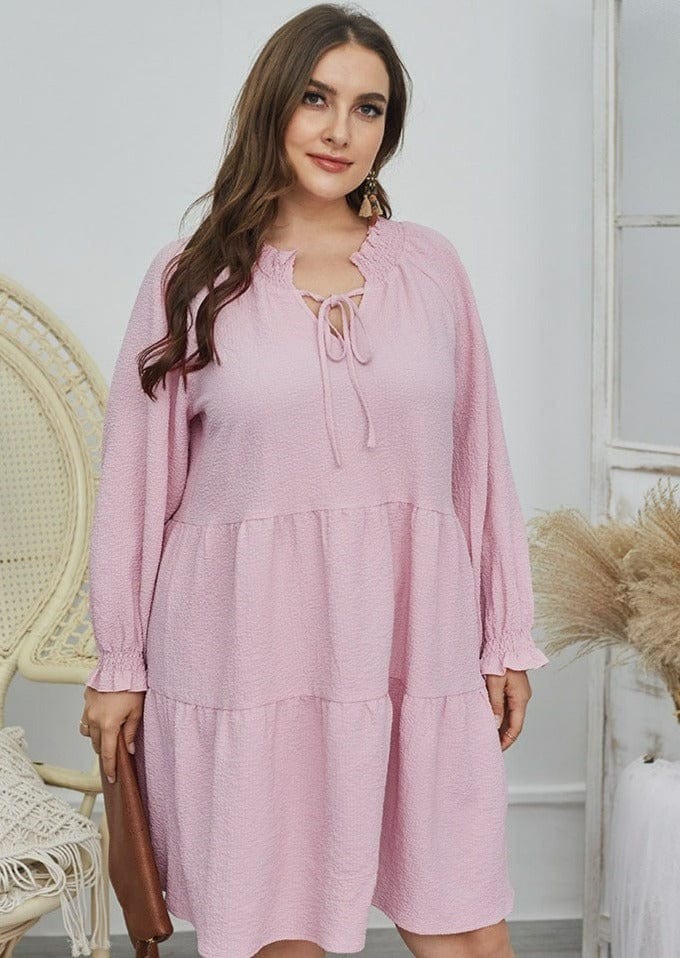 Das Kleid von Emes Shop besticht durch sein einzigartiges, strukturiertes Material. Es hat einen gerafften Halsausschnitt mit Schleife, lange Ärmel, eine Etuikleid-Silhouette, einen Stufenschnitt und ist knielang. Kombinieren Sie es mit auffälligen Ohrringen und High Heels für einen fantastischen Look in dieser Saison.