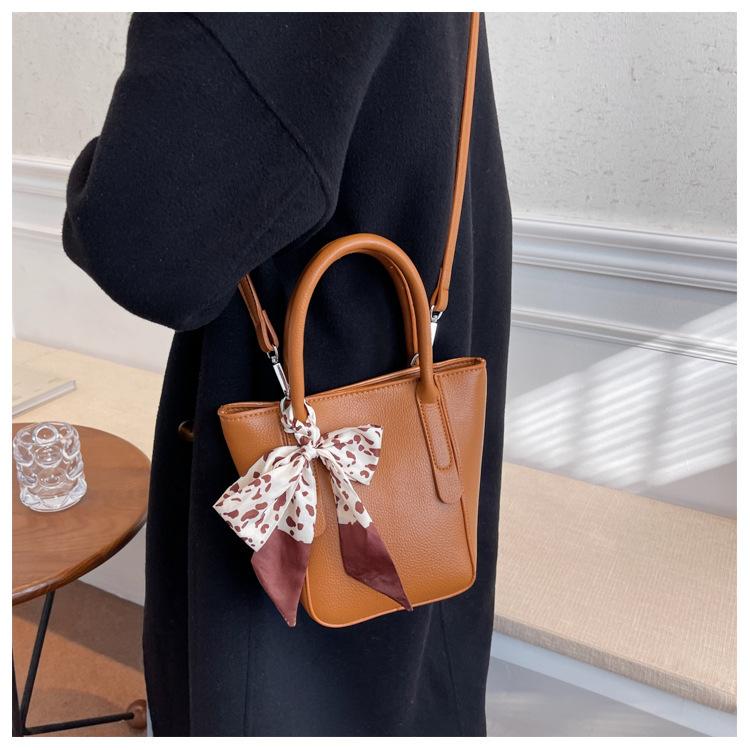 Die EMES SHOP Tasche ist mit einer lustigen Schleife bedruckt. Sie ist einfarbig, hat einen Tragegriff und längere Riemen.