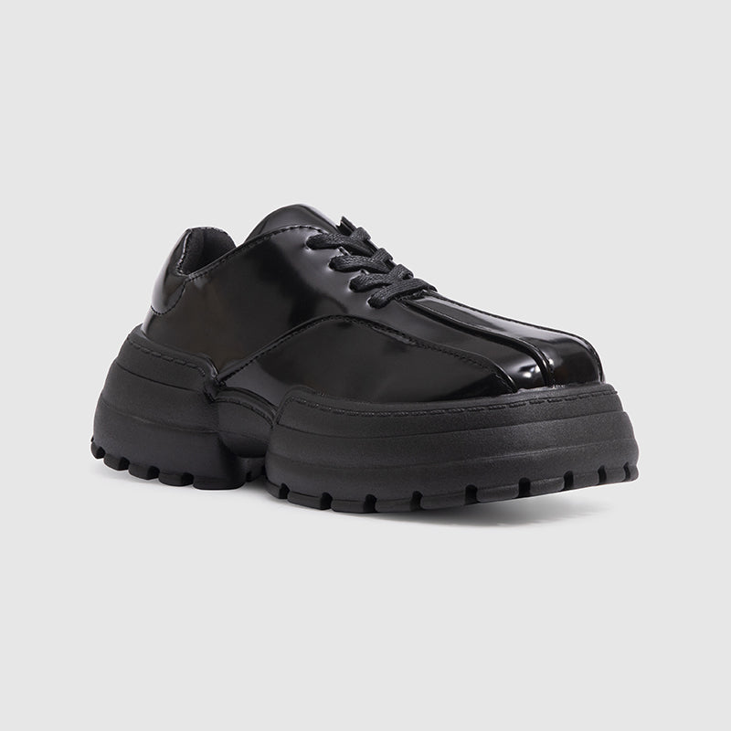 Polierte goldfarbene Akzente verleihen diesen Loafern mit quadratischer Spitze und elegantem , dickem Absatz einen Hauch von Glanz .