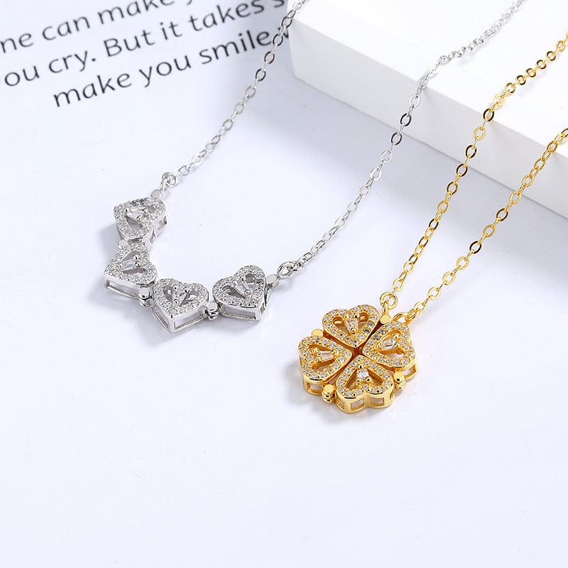 Die EMES SHOP-Halskette präsentiert sich mit einem vierblättrigen Kleeblatt-Design, das sich ein- oder ausfahren lässt. Sie besteht aus 925er Sterlingsilber und ist mit kleinen diamantähnlichen Kristallen verziert. Dieser elegante Schmuck passt zu jedem Stil.