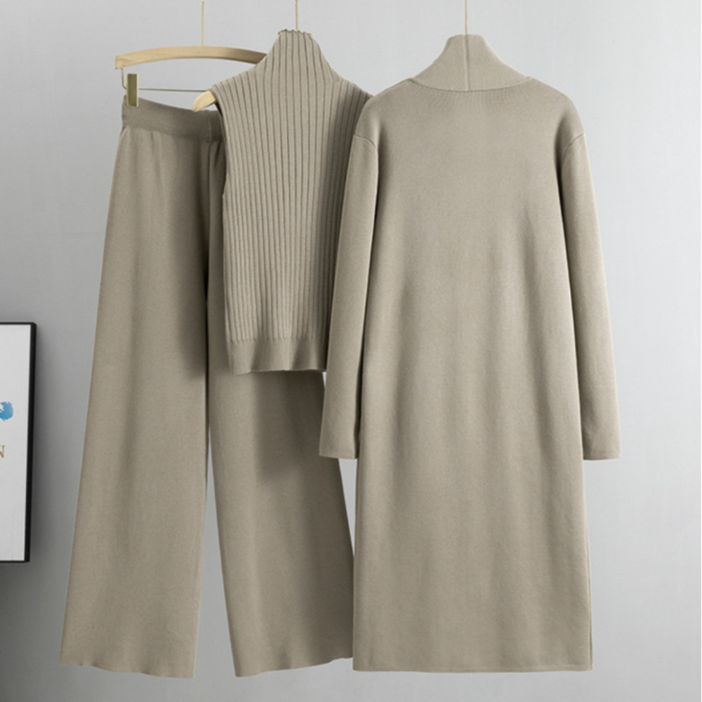 Renueva tu armario con el conjunto de punto de 3 piezas. Combina elegancia y comodidad en un diseño versátil. Incluye pantalón, chaleco de cuello alto y cárdigan. Este conjunto es ideal para ocasiones elegantes. Experimenta la combinación de estilo atemporal y comodidad moderna, para que te veas y te sientas genial dondequiera que estés.
