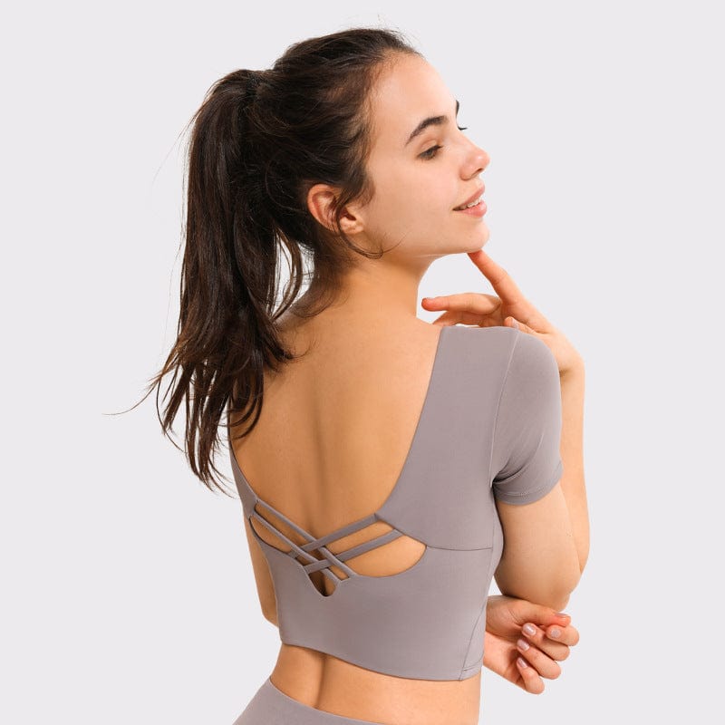 La camiseta EMES SHOP presenta una espalda escotada, mangas cortas y un corte ceñido. Diseñada con tirantes cruzados en la espalda, esta camiseta clásica, sencilla y cómoda transformará tu percepción de la ropa deportiva.