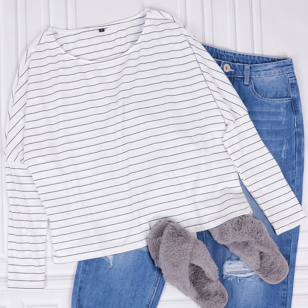 La camisa EMES SHOP luce un clásico hombro caído que garantiza un ajuste cómodo. Tiene cuello redondo, mangas largas, estampado de rayas y corte regular. Combínala con tus jeans y zapatillas favoritas para un look relajado esta temporada.
