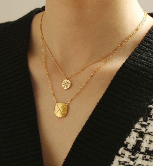 El collar EMES SHOP luce una pequeña moneda de oro grabada con una estrella de ocho puntas e incrustada con minicristales. Está hecho de latón chapado en oro de 18 quilates y ofrece un look sencillo pero a la moda.