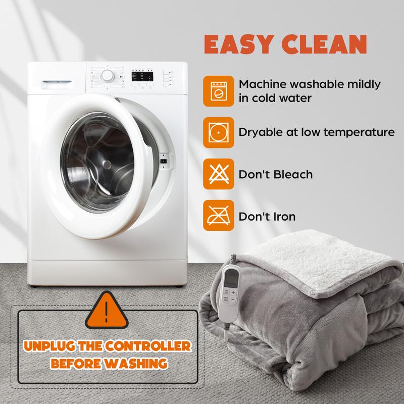 - Mantenimiento: La manta eléctrica se puede lavar a mano, a máquina con agua fría o en seco con suavidad. Asegúrese de que el cable del controlador esté desenchufado antes de limpiarla y déjela secar al aire o en secadora a baja temperatura.