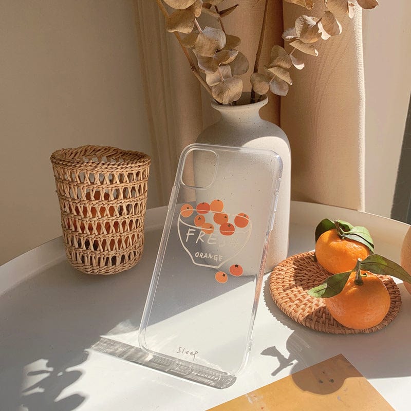 La funda para teléfono de Emes Shop presenta un tazón de naranjas frescas en el centro. Su diseño es moderno y artístico. Con cuerpo transparente, colócala en tu teléfono para un día dulce y refrescante.