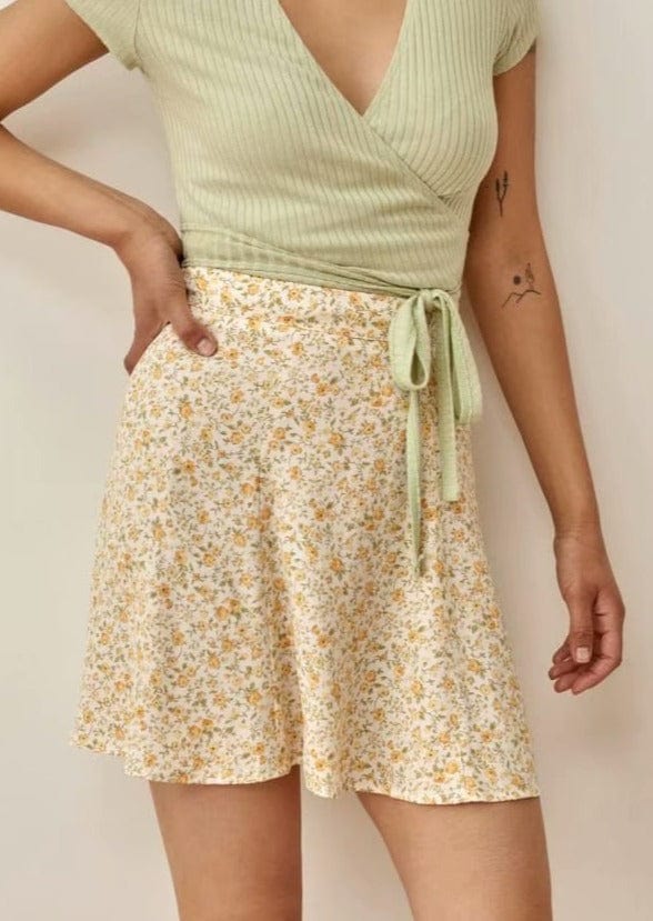 La falda EMES SHOP tiene tiro alto y largo mini. Presenta cintura ajustada y se ensancha hacia el bajo. Combínala con un body en tonos pastel y sandalias de tacón para un look veraniego perfecto.