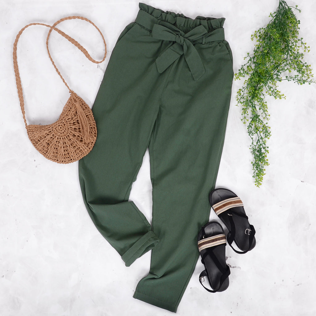 Los pantalones EMES SHOP lucen un cinturón único con volantes en la cintura. Cuentan con dos bolsillos laterales, bajo hasta el tobillo y un corte recto y relajado. Combínalos con una blusa metida por dentro y tacones para un look otoñal informal.