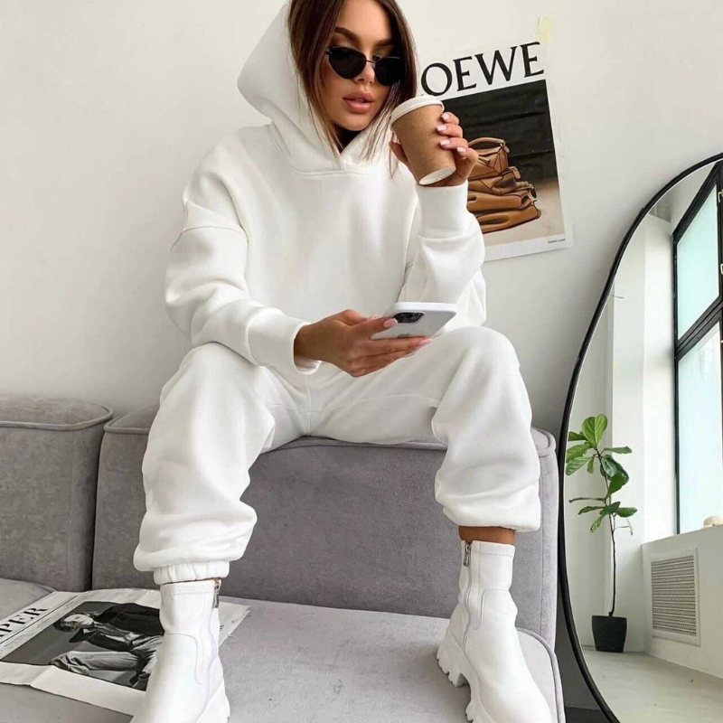 Este conjunto deportivo con capucha ofrece el equilibrio perfecto entre comodidad y funcionalidad, ideal tanto para salidas informales como para disfrutar del tiempo libre en casa. Su diseño limpio y sencillo garantiza versatilidad, permitiéndote combinarlo fácilmente con diferentes estilos para un look diario elegante y cómodo.