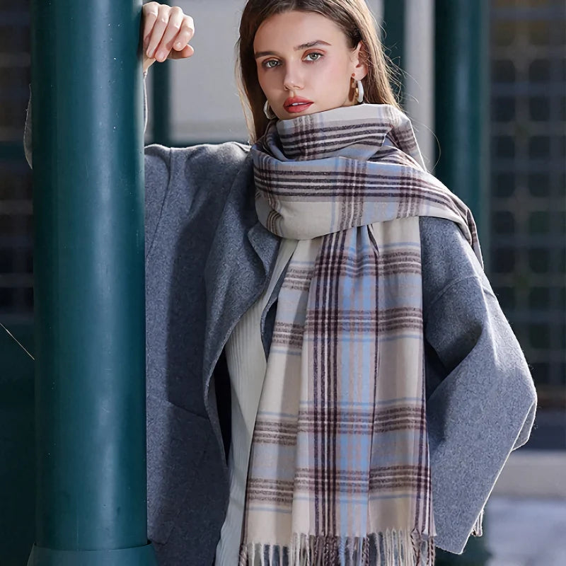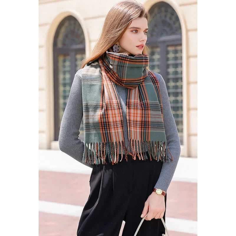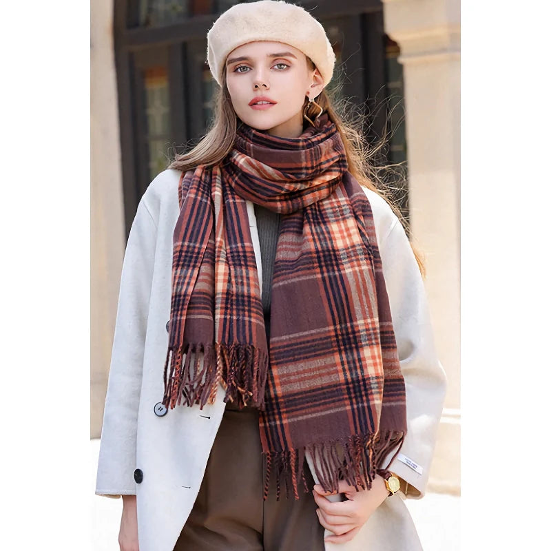 Manténgase abrigado y con estilo con la bufanda de invierno a cuadros de imitación de cachemira