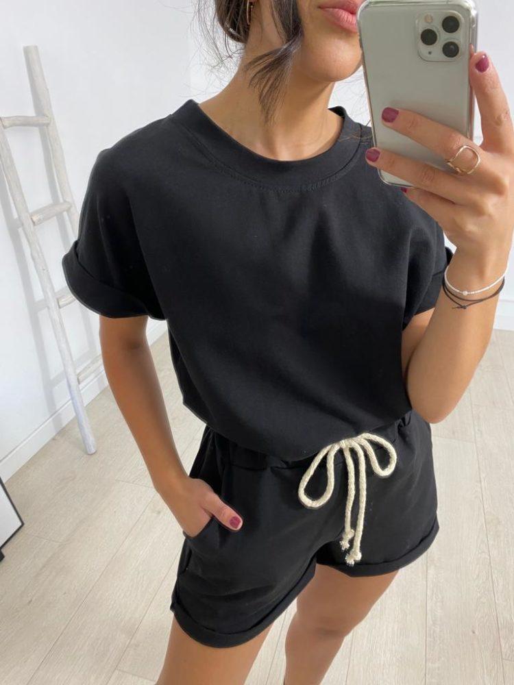 ¡Por fin un conjunto ultrasuave y cómodo para relajarse! Incluye un top con mangas con puños, corte oversize y sisa baja. Los pantalones cortos tienen una cómoda cinturilla elástica y el largo perfecto para relajarse.