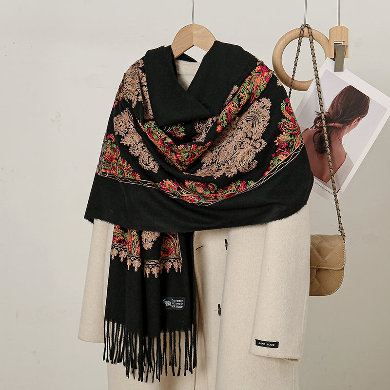 No dejes que el frío arruine tu estilo. Nuestra lujosa bufanda floral de cachemira combina a la perfección moda y funcionalidad, abrigándote con estilo.