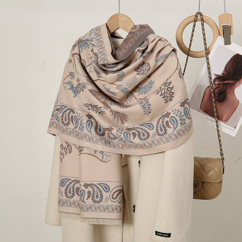 Esta bufanda es más que un accesorio funcional de invierno: es una obra de arte que realza todo tu armario. La tela de cachemira es conocida por su suavidad inigualable y sus propiedades aislantes, lo que la convierte en la opción perfecta para los fríos días de invierno. Su estampado floral es atemporal, lo que te garantiza un estilo elegante en cualquier ocasión. Ya sea que vayas a un evento festivo o simplemente quieras añadir un toque de elegancia a tu look diario, esta bufanda es perfecta para ti.