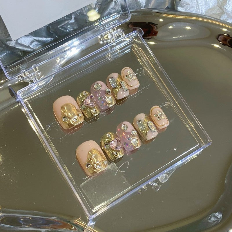 Pegatinas para uñas * 10 + Pegamento en gelatina * 1 + Pegamento para esmalte de uñas * 1 + Palito de madera de naranja * 1 + Tira pequeña para frotar * 1 + Algodón con alcohol * 1