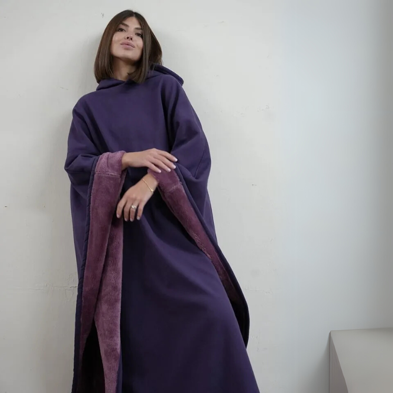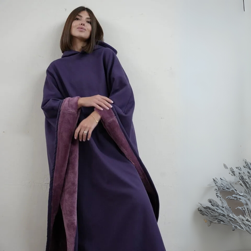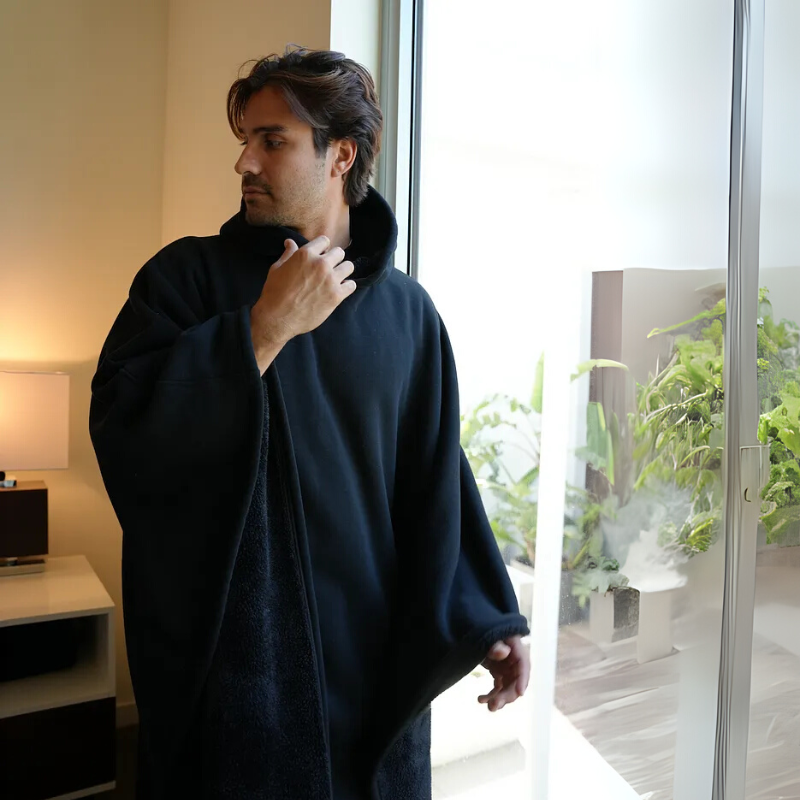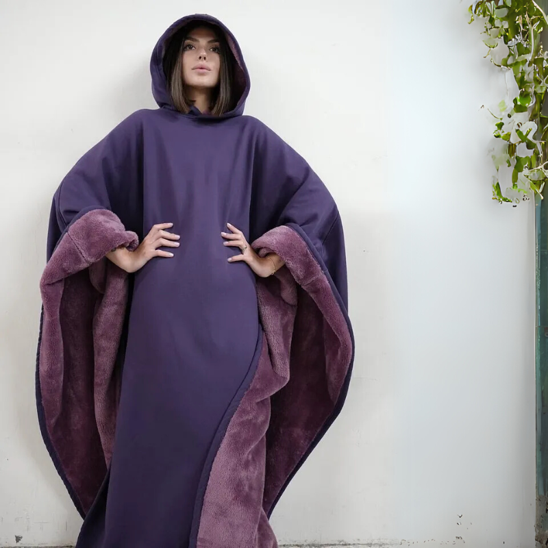 Envuélvete en calidez y comodidad con esta capa extragrande con capucha. Diseñada para relajarse en casa en las noches frescas o como capa para tus aventuras al aire libre. Combinando practicidad, comodidad y estilo minimalista, esta manta suave y ponible es la compañera ideal para cualquier temporada. Su diseño amplio cubre todo el cuerpo, mientras que el suave forro de piel sintética garantiza una sensación de confort. Ligera pero acogedora, esta versátil capa con capucha es ideal para quienes valoran la comodidad y la funcionalidad.