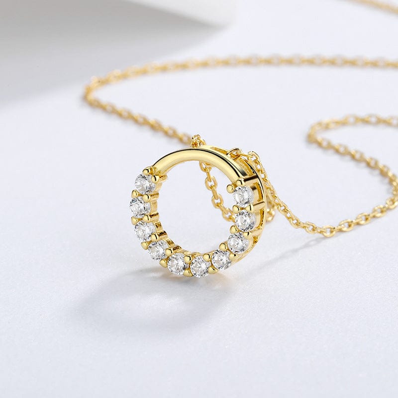 El collar EMES SHOP presenta un diseño circular sencillo, sencillo y elegante. Está hecho de plata de ley 925 y adornado con pequeños cristales tipo diamante a lo largo de la mitad del círculo.