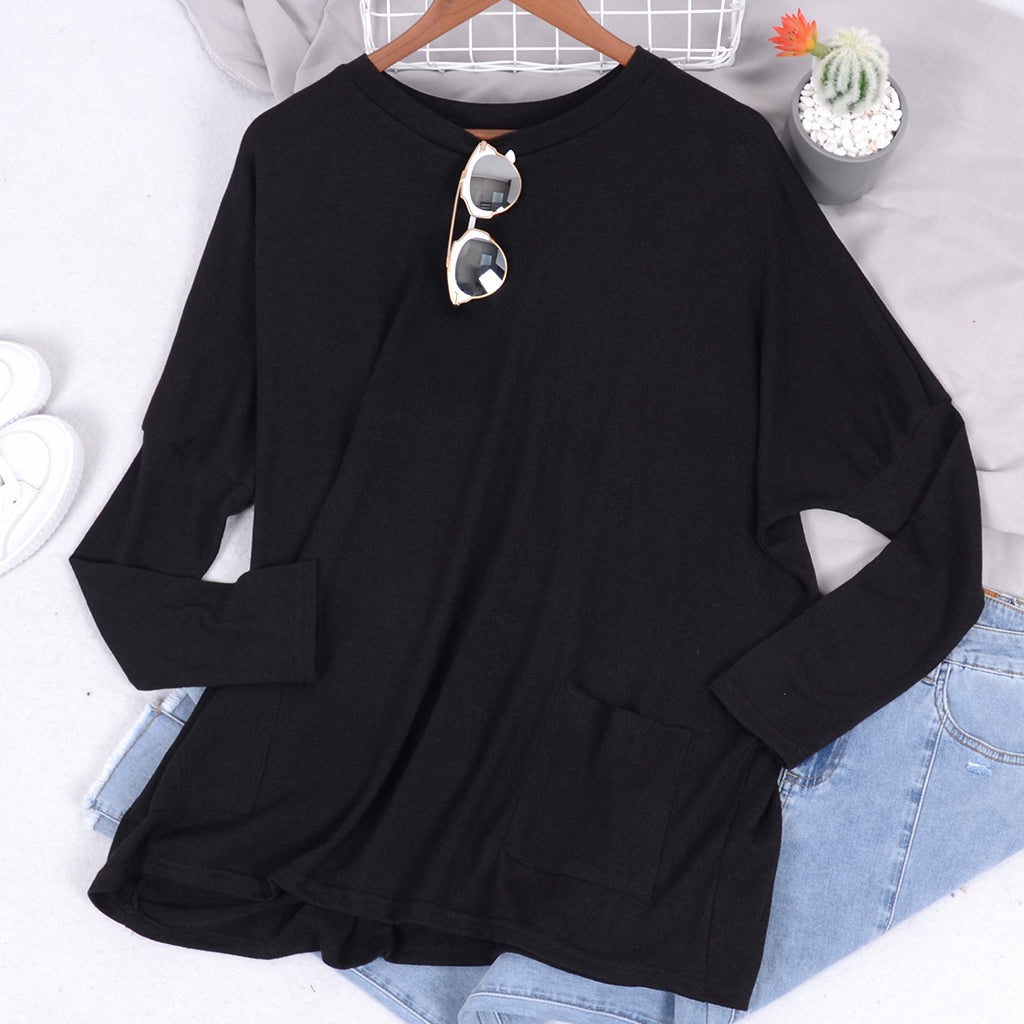 La camisa EMES SHOP luce mangas cortas suaves y femeninas. Tiene cuello redondo, color liso, bolsillos de parche delanteros y un corte holgado y holgado. Combínala con shorts vaqueros y zapatillas para un look informal.
