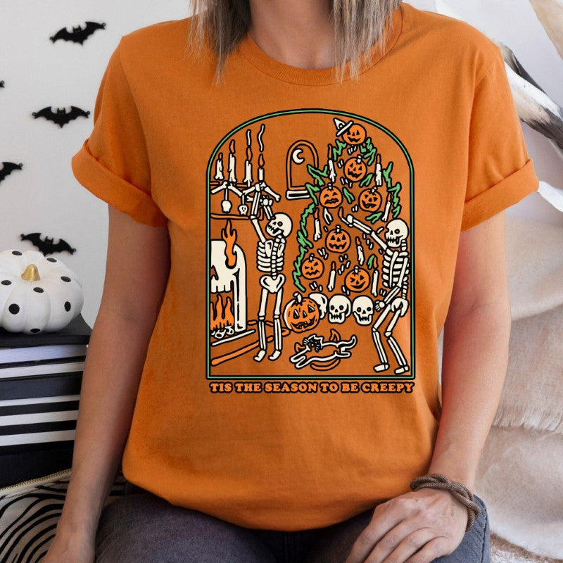 Celebra la temporada de Halloween con la camiseta "Tis the Season to be Creepy". Hecha con una mezcla de materiales cómodos, esta camiseta le da un toque divertido y espeluznante a tu armario, convirtiéndose en un clásico. La camiseta estampada "Tis the Season to Be Creepy" está hecha con una mezcla de materiales cómodos para que te sientas bien todo el día. Con un diseño divertido y espeluznante, es la manera perfecta de añadir un toque de espíritu de Halloween a cualquier atuendo.