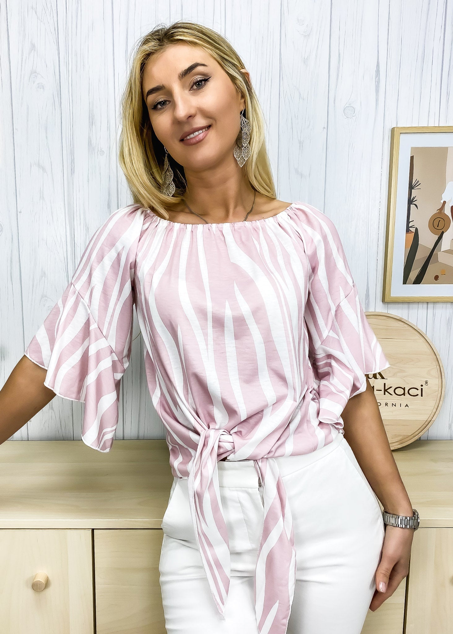 Una blusa súper linda con motivos de lazo en las mangas y en la parte inferior de la blusa.