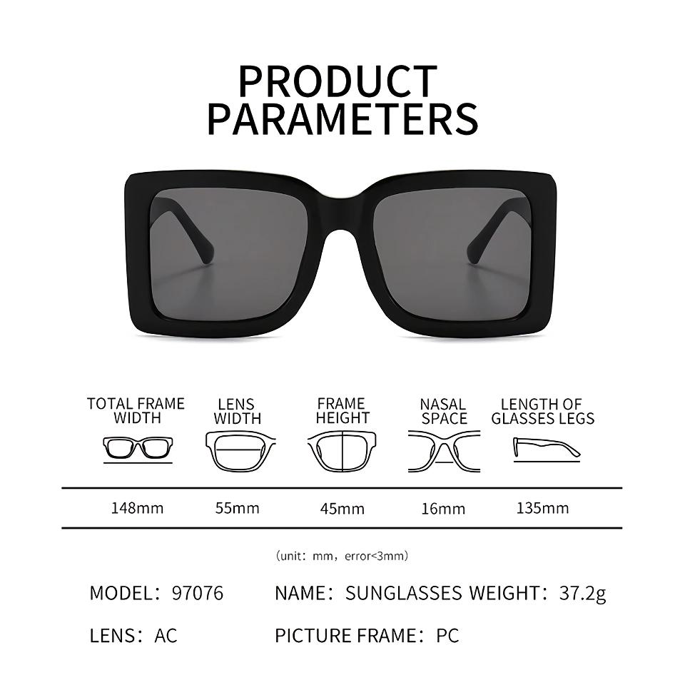 No esperes más para renovar tu colección de gafas. Haz clic en el botón "Añadir al carrito" y consigue hoy mismo nuestras modernas gafas de sol de moda extragrandes. ¡Disfruta de la combinación perfecta de estilo, protección y comodidad!