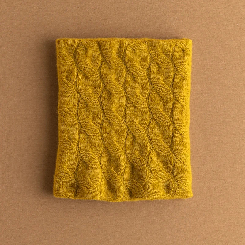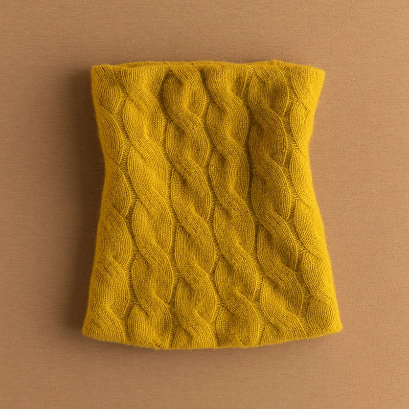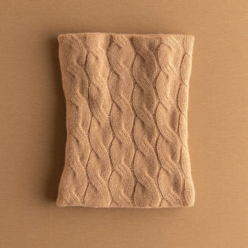 Nuestra bufanda está hecha de cachemira de cabra 100 % premium, conocida por ser una de las fibras más suaves y cálidas del mundo. La cachemira proporciona una calidez superior a la lana común, a la vez que es ligera y transpirable. Esta bufanda de aro ofrece un ajuste ceñido que retiene el calor y se mantiene cómoda durante todo el día. Su diseño atemporal y su lujosa textura la convierten en un accesorio invernal excepcional, tan cómodo como elegante.