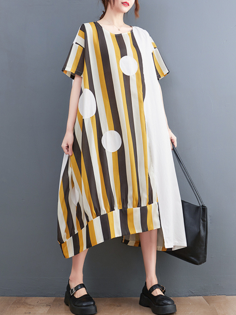 Este vestido blanco de corte A es una opción clásica y versátil para el guardarropa de cualquier mujer. Hecho de cómoda tela de algodón, este vestido ofrece una sensación suave y transpirable, perfecta para climas cálidos o ocasiones informales. El cuello redondo agrega un toque simple y atemporal al diseño, mientras que las mangas cortas ofrecen un look fresco y veraniego. La silueta de corte A proporciona un ajuste favorecedor que acentúa la cintura y se ensancha hasta el dobladillo, creando una silueta femenina y elegante. El patrón de rayas de lunares agrega un toque divertido y retro al vestido, agregando un toque divertido a tu atuendo. El color blanco proporciona una tela limpia y nítida que se puede combinar fácilmente con otros accesorios y zapatos para un look elegante y sin esfuerzo. Este vestido es perfecto para el uso diario, ya sea que te vistas para un brunch informal, un día en la oficina o una salida de fin de semana.