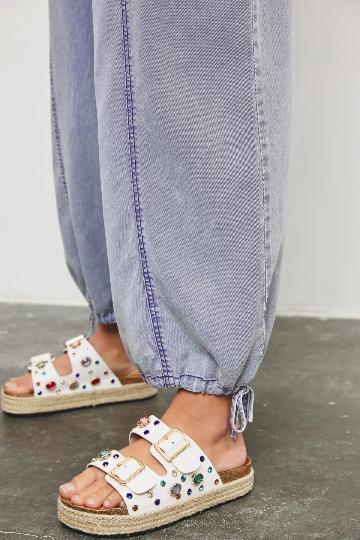 The silhouette of this jumpsuit is universally flattering. Its ankle-ties add a refined touch. visually elongating and slimming the legs.