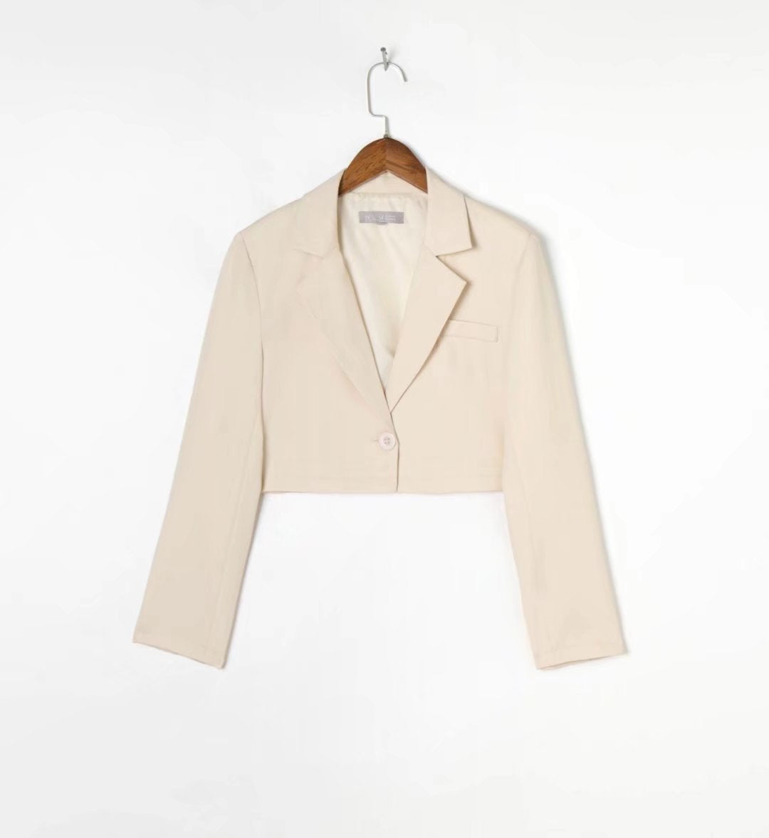 The EMES SHOP jacket is detailed with a traditional notch lapel collar. and front mini pocket. Features long sleeves. one center button. and falls at a cropped length. Pair this jacket with a pair of matching trousers or a sundress for a chic look.