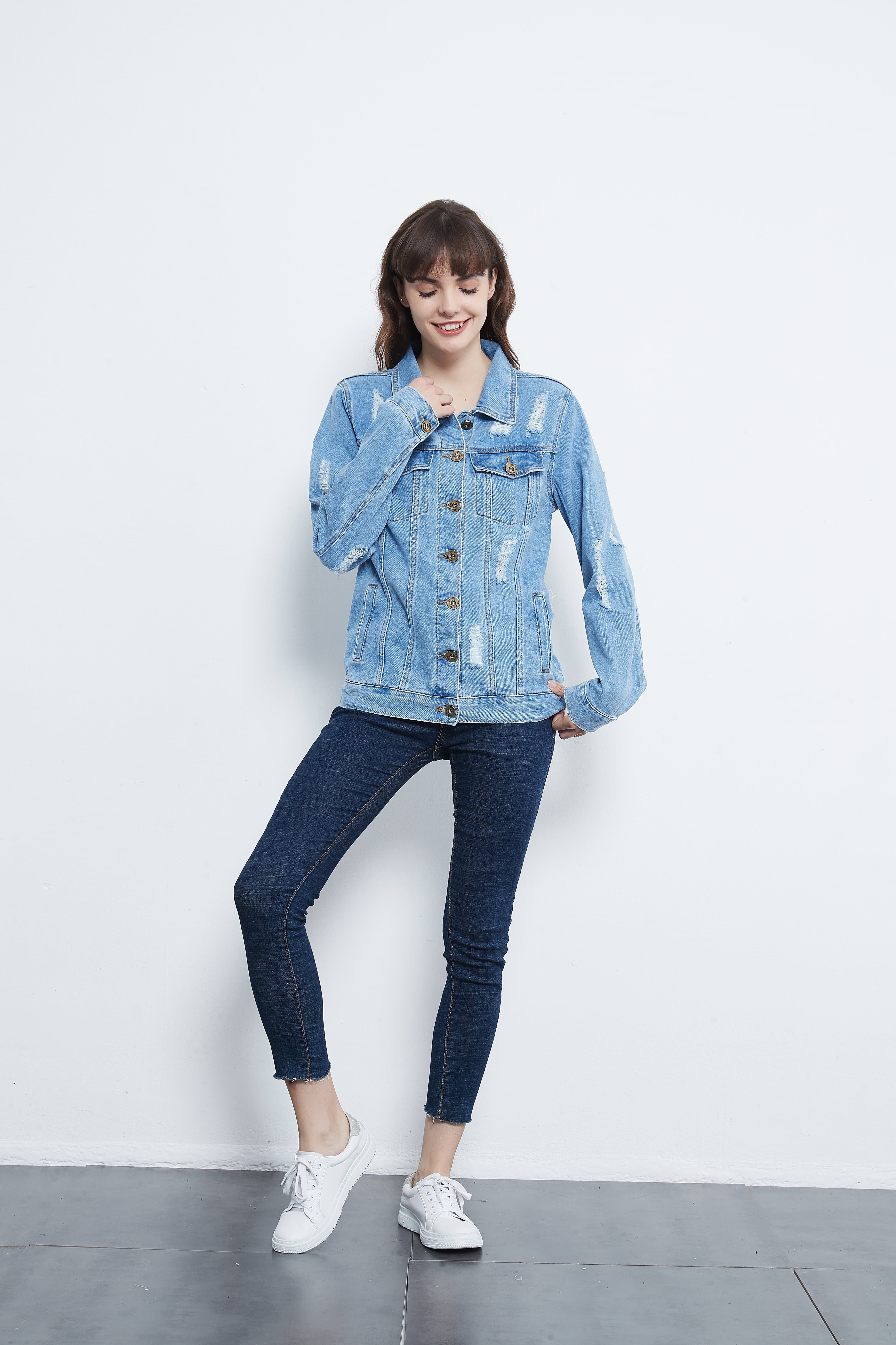 Classic loose fit ripped jeans coats are always staples in every closet! This light wash medium blue faded jean jackets are ideal for all seasons.