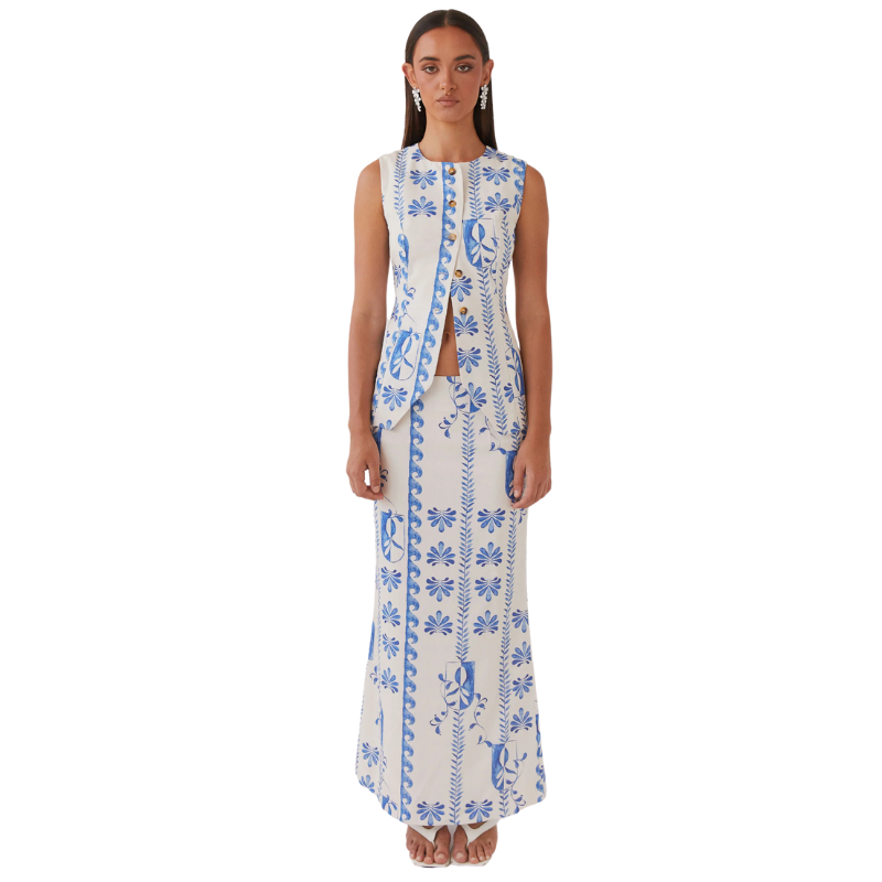 The Floral Print Two Piece Vest And Pants Set brings a fresh and elegant flair to your wardrobe. featuring a sleeveless vest with button closures and an asymmetrical hemline adorned with vibrant floral patterns. Paired with high-waisted tailored pants. this set combines structure and comfort. crafted from lightweight fabric ideal for warm-weather occasions. The coordinated design offers a refined look. making it a great choice for summer outings. garden parties. or brunches. Style it with accessories to create a variety of effortless yet polished ensembles.