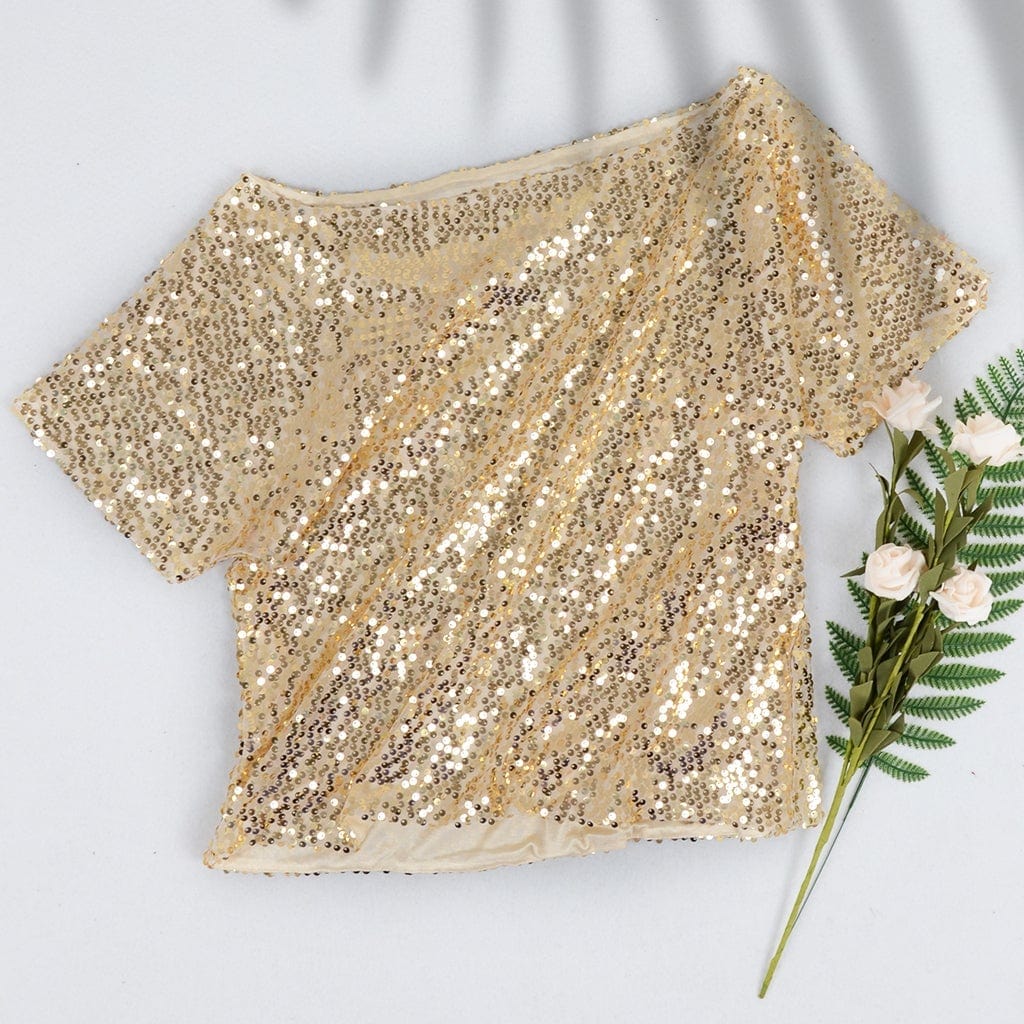 This fun off the shoulder sequin top is perfect for a party or night out occasion! The loose. all over sequin design for a lightweight comfy top that sparkles from every angle. Style with with light or dark denim for a more casual look. Lined interior to prevent sequins from scratching.