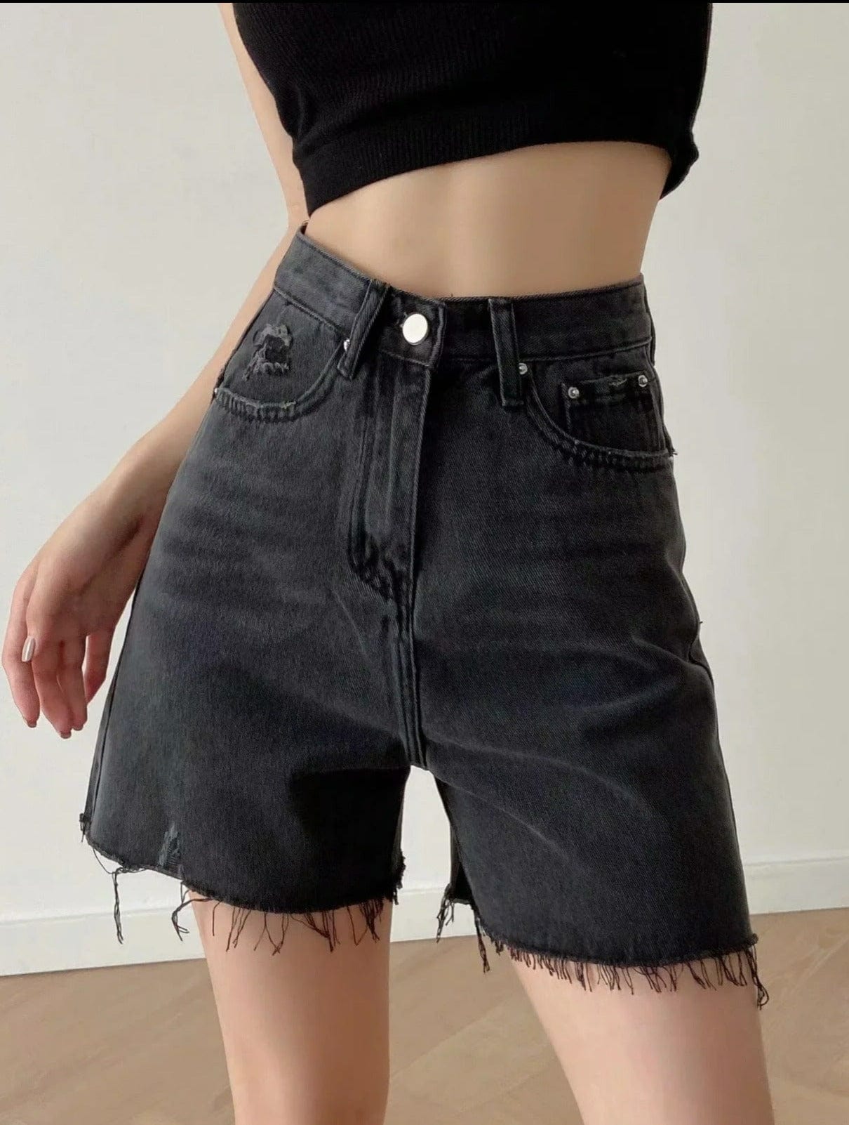 The EMES SHOP denim shorts are detailed with a high waisted rise. and fall above mid thigh. Feature distressed slits. and a raw hemline. These relaxed fitting denim shorts are perfect for throwing over your bikini after a long beach day. Finish off the look with some gold jewelry and a pair of sandals.