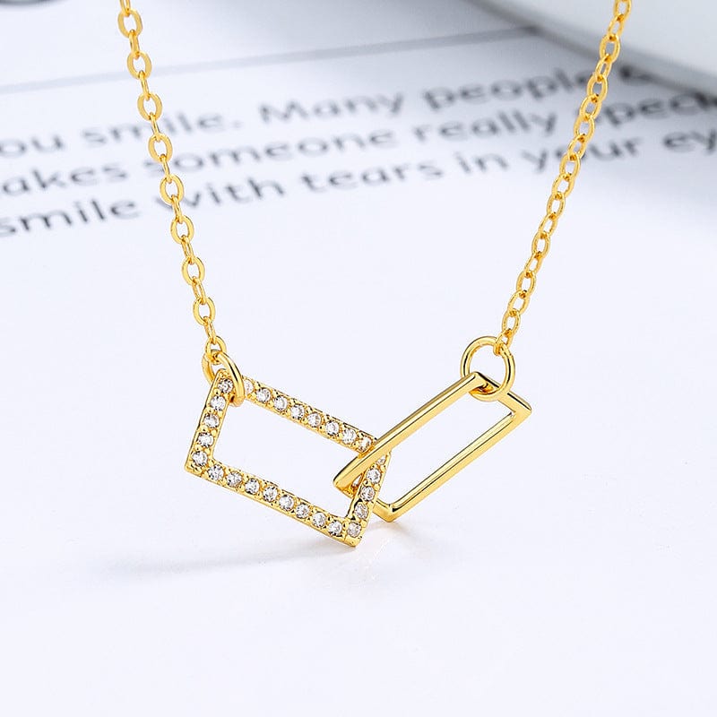 The EMES SHOPnecklace details a two interlocking rectangles design that is both simplistic and elegant. Features a 925 sterling silver and embellished with small diamond-like crystals.