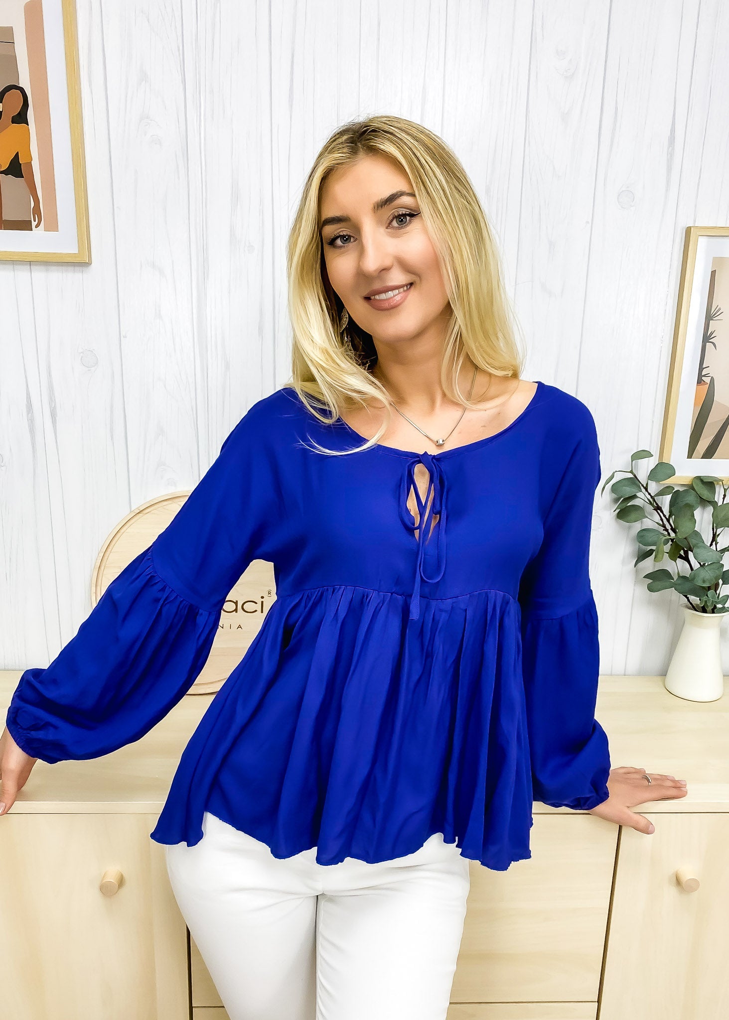 This ruffle-gatheredblouse is a must-have for summer and easily transition to fall! This puffed sleeve long blouse is perfect for any layering outfit or just standing on its own with your favorite high-waisted denim and suede boots.