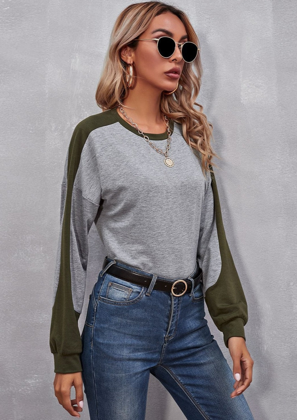 The EMES SHOP sweater is detailed with a cool two tone design at the side of the sleeves. Features a round neck line. drop shoulder. long sleeves. and oversized fit. Tuck it in a pair of skinny jeans for a stylish look.